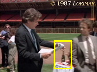 Product placement: Perrier-Jouët (Fleur de Champagne) is poured at Candlestick Park during the contract signing ceremony. Towards the end of the scene, a Coca-Cola ad is visible behind Richard and Liz.