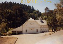 |   | The cave of the winery goes into the Mayacamas Mountains behind the building.