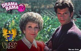 |   | first WARNER BROS. ad for the Internet series première on AOL In2TV (March 2006);note that the photo of JANE WYMAN and LORENZO LAMAS was accidentally flip-flopped and that WARNER BROS. decided to use the version of the show's logo that was specifically modified and redesigned for this website, www.falconcrest.org