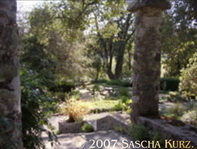 The semi-circular terrace surrounded by a little wall of native stone that can be reached from the lower circle drive around the Gioberti House was shown in some scenes of "Falcon Crest" and may be best remembered from Terry and Michael's first kiss.