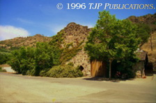 the Historic Stone Winery,portraying Stone Briar Winery / Gianinni Winery / Gioberti Winery as well as the cave inside the main building of the Falcon Crest Winery Building Complex.