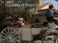 Just a few weeks before, the same horse buggy was used on "Hart to Hart", which had just moved to film its 1982-83 season at THE BURBANK STUDIOS; the episode was entitled "Hart's Desire" (# 073 <4.06>; original U.S. airdate: 11/16/1982, ABC — screen grab 2). "Hart to Hart" rented the horse buggy from LORIMAR.
