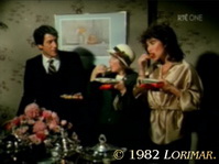 |   | It was used later in the TV lounge at Greg Sumner's ranch during the video presentation of Laura's farewell messages in "Noises Everywhere — Part II" (# 201 <9.11>; original U.S. airdate: 12/10/1987, CBS) of "Knots Landing".
