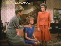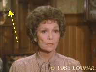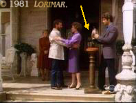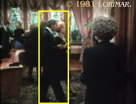 Die Esszimmerstühle im Gioberti-Haus — einer von ihnen in dieser Episode im Hintergrund sichtbar (gelbe Markierung); zum besseren Vergleich links ein Szenenfoto aus # 012 — sind keine Requisiten im Eigentum von LORIMAR. Sie wurden von den BURBANK STUDIOS (heutzutage WARNER BROS. STUDIOS), einem von WARNER BROS. und COLUMBIA PICTURES damals gemeinsam betriebenen Unternehmen, gemietet. Sie wurden mit Ausnahme von # 002 (vergleiche dort) die ganze Staffel über verwendet.