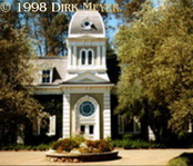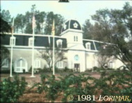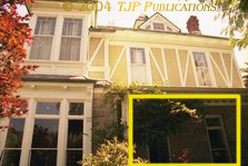 Fehler im Bühnenbild des viktorianischen Herrenhauses von Falcon Crest: Die Wohnzimmerfenster nach Süden sind anders geformt (halbkreisförmiger Erker) als in Wirklichkeit; dasselbe gilt für die Fenster nach Westen.