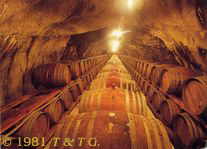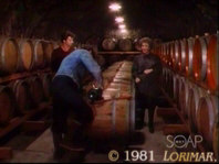 Drehort für die Szene mit Angela und Lance in der Weinkellerei von Falcon Crest ist der wirkliche Fasskeller von Stags' Leap.