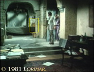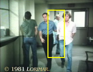 Gekürzte Szene: Als Angela in der Weinkellerei von Falcon Crest neben dem toten Jason kniet, ging die Szene in der Langfassung für die Regie noch weiter: Sie findet auf dem Boden das Foto von Chase (siehe oben) und zerreißt es. Auch wenn das Foto in der Endfassung nicht mehr in Großaufnahme zu sehen ist, so erkennt man in den verbliebenen Einstellungen noch, dass es neben Jasons Leiche auf dem Boden liegt (gelbe Markierung auf dem Standbild). Dieser Teil der Szene wurde in der Nachbearbeitung entfernt, was nur folgerichtig ist, da auch die frühere Szene, in der Turner Jasons Taschen durchsucht hat (siehe oben), schon herausgeschnitten wurde.