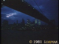 Auch die Einspielung von New York City bei Tag — wiederum eine Ansicht der Brooklyn Bridge und von Manhattan — ist aus einem Filmarchiv zugekauft. Gefilmt wurde vom Empire-Fulton Ferry State Park in Richtung Nordwesten.
