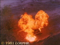 Die Segmente, in denen der Lieferwagen über die Klippen rollt und unten explodiert (Standbilder 3 bis 5) stammen von einer charakteristischen Felsformation namens Carson's Cliff in den Indian Dunes in Valencia, CA (Drehtag 29.10.1981). Die Indian Dunes waren eine Film-Ranch und als solche in den 1970er und 1980er Jahren ein häufiger Drehort, vor allem für Action- und Abenteuer-Serien, die viele Stunts beinhalteten; 1990 wurde das Gelände zur landwirtschaftlichen Nutzung umgewidmet. Die an dem Felsvorsprung gedrehten Segmente sind ebenfalls im Modus "Tag für Nacht".