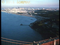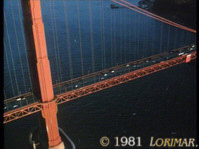 Die Fahrt von Angelas Mercedes-Benz 600 über die Golden Gate Bridge — Chao-Li holt Chase und Maggie vom Flughafen in San Francisco ab — ist eine nach Südosten gerichtete Luftaufnahme aus einem Helikopter mit San Francisco im Hintergrund.