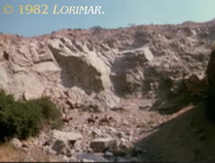Das bergige Gelände, vor allem der Bereich mit Lances und Coles Sturz von den Pferden, ist in Wirklichkeit ein weiterer Drehort: Bronson Canyon in Hollywood, CA in dem Gebiet um die berühmten Höhlen, die am bekanntesten als Batcave aus der 1960er TV-Serie "Batman" wurden und die später in "Falcon Crest" als Myrna Mine (# 087) und der Zugang zum Minenschacht nahe Hobart (# 182) zu sehen sein werden.
