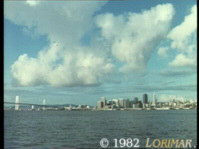 Die Einspielung von San Francisco — Blick über die Bucht mit der Oakland Bay Bridge, aufgenommen von der Avenue of the Palms auf Treasure Island — ist aus einem Filmarchiv zugekauft.