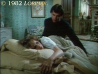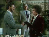 Kamerafehler: In der Weitwinkeleinstellung von Emmas Studio im Dachgeschoss des Herrenhauses von Falcon Crest ist die Kamera so weit hinten, dass man sieht, dass sowohl das Kopfteil des Betts als auch die Wand dahinter fehlen. Es handelt sich um eine mobile Wand in der Kulisse, die nach Bedarf entfernt werden kann.