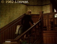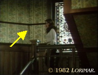 In der schrägen Ecke des Treppenhauses im Herrenhaus von Falcon Crest ist die Tapete beschädigt. Der Grund ist derzeit unklar. In der vorherigen Folge (Standbild 1) war die Kulisse noch ohne Schaden.