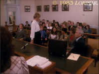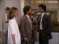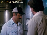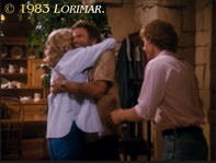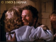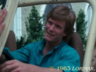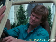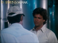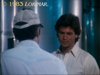 Die Verletzung, die LORENZO LAMAS am 17.06.1983 durch einen Zusammenstoß mit einem störrischen Pferd erlitt (vergleiche # 042), ist immer noch erkennbar: Obwohl die Visagisten die Stiche in seiner Unterlippe ziemlich gut kaschierten, ist deutlich sichtbar, dass sie auf der rechten Seite stark geschwollen ist. Diese Szene wurde am 18.06.1983, also dem Tag nach dem Unfall, gedreht.