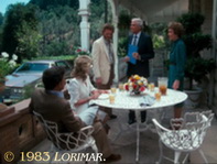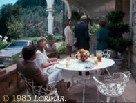 Obwohl Spring Mountains Villa Miravalle jedes Jahr vor den Dreharbeiten neu angestrichen wurde, um das Haus auf Film frisch aussehen zu lassen, wurden bei den Malerarbeiten in diesem Jahr offenbar einige Teile des Hauses übersehen. In der Szene auf der Terrasse des Herrenhauses von Falcon Crest sieht der obere Rahmen des linken Erdgeschossfensters im Hauptturm verwittert und abgenutzt aus und hätte einen frischen Anstrich gebraucht. Vergleiche auch # 045.