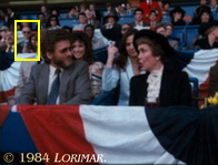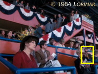 Der Statist IAN BRUCE (im Abspann nicht aufgeführt) erscheint wieder als der Mann mit kastanienbraunen Haaren und Stirnglatze — diesmal bei der Eröffnung der Rennbahn. Seine Kleidung ist übrigens dieselbe (ockerfarbenes Sakko und schwarze Hose), die er auf den Einspielern des New Globe trägt (vergleiche # 022, 030, 038 und 041).