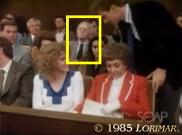 Der Statist KEN CLAYTON (im Abspann nicht aufgeführt) spielt wieder den brünetten Herrn über 50 — diesmal als Zuschauer bei Melissas Strafprozess im Bezirksgericht von Tuscany.