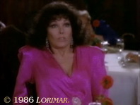 MARGARET LADDs Bild entstand auf der Veranda des Herrenhauses von Falcon Crest am 12.08.1986.