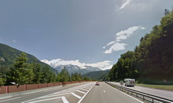Das Straßenschild in den Alpen weist den Weg nach Chamonix / Frankreich. Es handelt sich um ein französisches Schild. Drehort ist die früher zweispurige, heutige vierspurig ausgebaute Nationalstraße N 205 (bzw. Europastraße E 25) bei Les Houches / Frankreich. Diese Aufnahme, die auch bei den Dreharbeiten zu LORIMARs "Lace" ("Blutsbande"; 1984) entstand, blieb in der ursprünglichen Produktion ungenutzt.