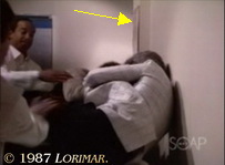 Bühnenbild-Panne: Als sich Lance und Frank Starr im Flur des Krankenhauses prügeln, wackelt die komplette Wand. Das Set ist nicht sonderlich fest gebaut.