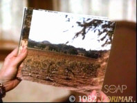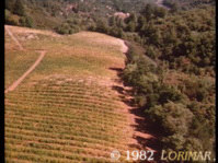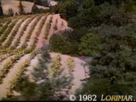 Angela presents photos of the Agretti Vineyards to Lance: The close-up of the first photo shows vineyards located south of the Gioberti House. The tree-lined main driveway to Falcon Crest can be seen in the background. This means that parts of the Agretti Vineyards must be a neighboring estate to the original 50 acres of Falcon Crest.