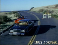 The car forcing Lance's Chevrolet Corvette Targa C3 onto the shoulder of the road, which will finally result into his crashing the bike, is a black 1980 Chrysler Cordoba.