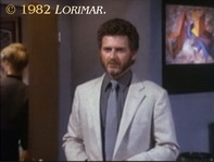 Cutting costs: DAVID SELBY, as Richard, wears the exact same dark gray pin-stripe suit that he wore as Michael Tyrone / Edwards in # 22 of "Flamingo Road" (1981-82 season; screen capture 1).