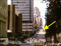 Between 09/22/1982 and 06/21/1984, no cable cars were in service in San Francisco due to a complete rejuvenation project (compare Richard's comment in # 071). This episode shows the discrepancy in principal photography vs. depicted time: The cable cars were still rolling when the San Francisco segments were filmed in July and August 1982, but the episode depicts events in October 1982 (see below), which is why the cable car should not be rolling on California Street in the scene.