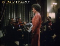 When Angela, early during the party in the Falcon Crest Victorian Mansion, asks the violinist to play something, she concludes her sentence with: "Thank you." This part was dubbed in the ADR booth in post-production because her lips apparently say something else. The whole line was not in the script though, but ad-libbed by JANE WYMAN.
