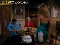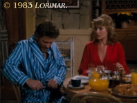 In the breakfast scene with Angela, Lance and Phillip by the Falcon Crest Victorian Mansion swimming pool, she says to Lance that she thought he was racking the '81 Chardonnay. Her lips, however, do not match the word "Chardonnay". That particular line was dubbed in the ADR booth to replace "Cabernet" (as scripted). It remains a mystery why the grape variety was changed in post-production.