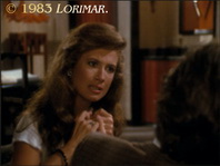Post-production mistake: 1982 stock footage of the Tuscany Valley Hospital is reused. The sign still reads Tuscany Valley Memorial Hospital. Signs saying Tuscany Valley Hospital have usually been used for that purpose since the beginning of this season (compare the screen captures in # 041).