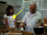 Uncredited stand-in GORDON HODGINS appears as an extra again — this time in his usual rôle as a Tuscany Valley gentleman who buys a baguette at Caproni's Italian Bakery.