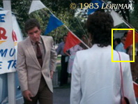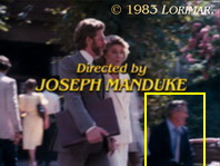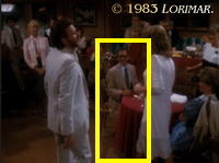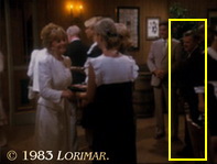 Uncredited extra KEVIN G. TRACEY appears as the thick-eyebrowed Tuscany Valley gentleman again — this time as a guest at Chase's party in the Falcon Crest Winery Building.
