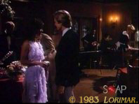 Uncredited stand-in MARTHA MANOR appears as an extra again — this time as a guest at Chase's party in the Falcon Crest Winery Building. The actress is all herself this time with no specific make-up or wig.