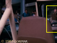 It becomes obvious in this episode how difficult it is for the make-up department to cover LORENZO LAMAS' tattoos. The "make-up" on his right shoulder is partly darker, partly sort of glossy when he moves. Check out # 035 for general information on his tattoos.