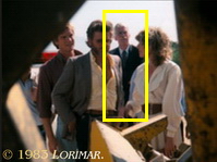 Uncredited extra DAVID CHANNELL appears again as the brown-haired Tuscany Valley gentleman, this time as a member of the County Board of Supervisors at the Tuscany County Building.