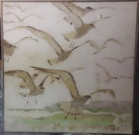 The picture in the waiting area at the California State Hospital for the Criminally Insane is a 1972 painting (oil on canvas) by American artist LEE REYNOLDS (born 1936) entitled "Seashore" a.k.a. "Seagulls and Beach".