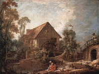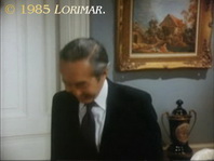 As this episode reveals, there has been a new picture on the wall between the pocket doors and the book shelves in the Falcon Crest Victorian Mansion study since the beginning of this season. A close-up (screen grab 2) will be featured in # 095. This prop is a flip-flopped replica of the Rococo painting (oil on canvas; 1751) by French artist FRANÇOIS BOUCHER (1703 – 1770) entitled "Le Moulin" ("The Mill").