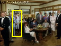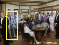DAVID GUST, the tall, black-haired and mustached uncredited extra, who is best known for his rôle as an assistant district attorney (# 091, 092 and 154), but who also plays different characters in the series, takes part in the celebration to introduce Terry as Richard's new partner in Tuscany Downs this episode.