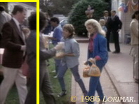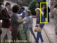 Uncredited extra IAN BRUCE participates again as the chestnut-haired guy with a receding hairline — this time as a patron at the nightclub in Los Angeles. It seems like an unusual conincidence that this Tuscany Valley inhabitant is there just at the time when Lance pays his visit to Apollonia. Maybe a case of negligent extras casting?