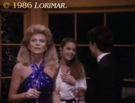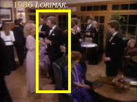 Uncredited extra JULIE SALLES participates again — in her first appearance in this episode not in her usual rôle though, but as a maid at the Falcon Crest Victorian Mansion. For her second appearance in this episode, see below.