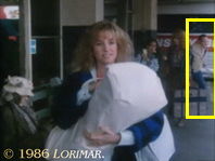 Uncredited extra KATHRYN JANSSEN appears as the gray-haired lady from the Tuscany Valley again — this time in the lobby of the Carlyle of Nob Hill.