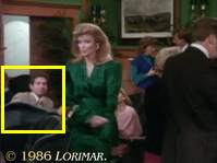 Uncredited extra BRUCE DOBOS appears in this episode again as the dark-haired man in his 30's — this time as a patron at the Tuscany Downs Turf Club again.