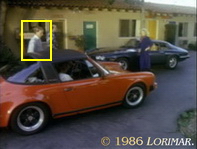 The car of the couple checking into or out of Harry's Hide-away Adult Motel is a red 1986 Porsche 911 Carrera Targa.
