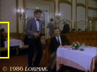 Uncredited extra KEVIN G. TRACEY's second appearance in this episode as the thick-eyebrowed Tuscany Valley gentleman is as a patron at the nightclub in San Francisco. For his earlier appearance in this episode, see above.
