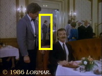 After his first appearance in this episode (see above), uncredited extra DAVID CHANNELL appears again as the brown-haired Tuscany Valley gentleman — now at the nightclub in San Francisco.