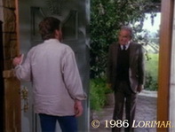 Channing House interior set: The door in Richard's bedroom is a door to a walk-in closet this episode. Inconsistencies: In # 103, 109 and 113, for instance, it led to a hallway (compare screen capture in # 113). In season 7 (compare # 161), it will be the door to the bathroom.