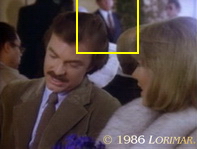 After his earlier appearance at the John F. Kennedy International Airport in this episode (see above), uncredited stand-in GORDON HODGINS appears a second time an extra in this episode; now as a passenger at San Francisco International Airport. — Again, coincidence or rather negligent extras casting?
