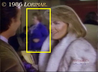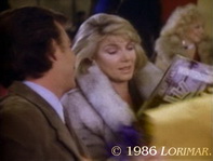 The fur Maggie is wearing in this episode is the same piece Jacqueline wore in # 024. It remains a mystery if this is an attempt of LORIMAR's wardrobe department to save production cost or if this was a deliberate decision since Maggie was bequeathed Jacqueline's jewelry, so it would not be surprising if the fur had been another bequest from her mother-in-law's estate.